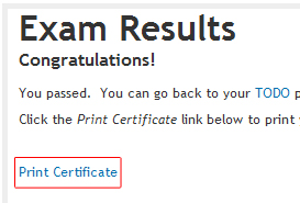 From the Exam Results page click on Print Certificate