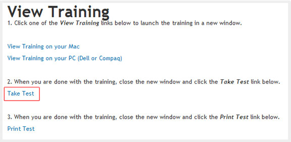 From the View Training page select Take Test.