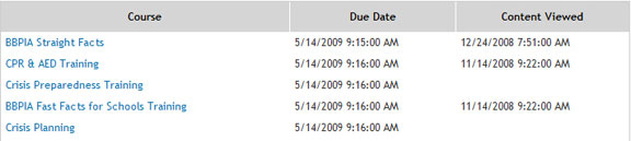 After you log in, your To Do List appears showing a list of your training courses. Courses are listed in the order that they are due to be completed.