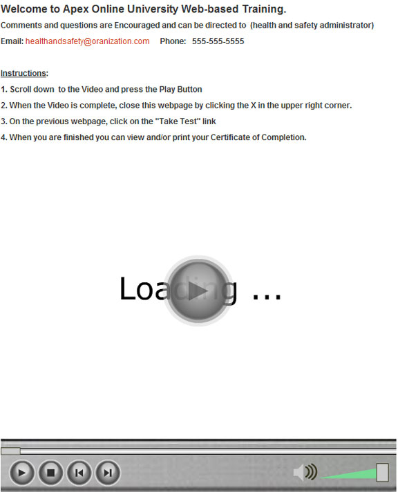The Training Video page appears in a new window or tab (depending on your web browser settings).