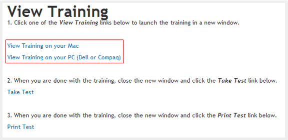 Click on one of the View Training links for PC or Mac.