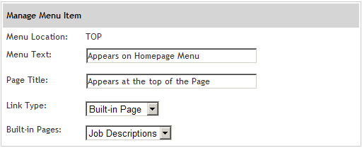 Note: You can add the link to the Top Menu or Left Menu of your homepage.The Manage Menu Item page appears.