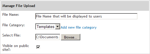 Visible on public site? Check this box if you want the file to be displayed on the Public File Page. Uncheck it to keep the file visible only for administrators.