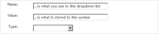 Type: The Type is linked to what dropdown list the Name and Value will be used in.